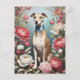 Elegant Whippet Pink Peony Flowers Blue Background Postcard