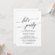This elegant white and black calligraphy let's party invitation card is perfect for a simple event. The neutral design features a minimalist card decorated with romantic and whimsical typography.