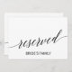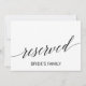 This elegant white and black calligraphy "reserved" sign is perfect for a simple wedding. The card is double sided (prints on both sides). The neutral design features a minimalist card decorated with romantic and whimsical typography. Use these cards to reserve chairs or tables at your wedding ceremony, reception or any event.