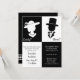 A lady or a gent? Reveal it all at this gender reveal party for mummy-to-be! This elegant and posh gender reveal party invitation is in boxes of classy, modern and white and black with silhouette outlines of a lady with a hat and pearl necklace and a gentleman with a top hat, bow tie and suit. Personalise easily with your party details.