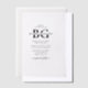 A minimalist black and white monogram initials wedding design. A simple design that uses the bride's and groom's initials and names to create an elegant classic monogram. A charming black and white minimalist monogrammed design with classy script typography. An elegant black and white monogram initials themed wedding invitation design with modern elements. Matching wedding stationery items and other wedding invite formats are also available.