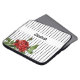 An elegant white and black vertical pinstripe design with red roses. Personalise by adding your name.