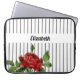 Elegant White and Black Pinstripe Roses and Name Laptop Sleeve