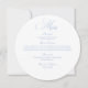 The Personalized Elegant White and Blue Wedding Menu Circle Card adds a refined and timeless touch to your reception tables, featuring a clean round shape with soft white and blue details that suit classic and modern celebrations alike. Perfect for couples looking for wedding menu, wedding menu ideas, wedding menu cards, wedding menus, blue wedding theme, dusty blue wedding, blue wedding, light blue wedding, dusty blue wedding theme, something blue wedding, light blue wedding theme, baby blue wedding, baby blue wedding theme, french blue wedding, coastal blue wedding, this design complements a graceful and romantic wedding aesthetic while showcasing your menu in an elegant way.
