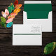 Elegant invitation envelope done in white, with a thin emerald green border, on the back flap. The inside of this envelope is done in solid emerald green. Personalise the return address to suit your needs.