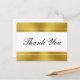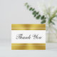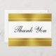 Black script says 'Thank You' on gold look postcard. Faux gold background is an artistic rendering (no foil on card).