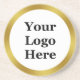 A display image is inside a white circle. The circle has a faux gold border. It is not made of foil. You can replace the image with your logo.
