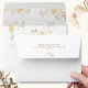 Elegant white wedding envelope with exquisite faux foil gilded floral details inside! Design coordinating our "White and Gold Enchanting and Celestial" collection invites. Envelope with elegant return address and named on back top flap with faux gilded element. Design with option to add or erase name(s) and address on top back flap. If you prefer to erase the faux gilded details inside or on the back flap, simply select "Edit Using Design Tool" and delete them on the editor screen. NOTES: 1) the default size A7 fits our 5" x 7" invitation cards, please make sure to select the right size for you before ordering (envelope measurements explanation on product page left bottom area), 2) Option to choose paper type from basic paper or linen (for a more formal and elegant style you might like to choose your envelopes in "Linen"). Same envelope design in blue, navy and in green also available. Part of our " White and Gold Enchanting and Celestial Collection". Visit the entire collection at: