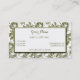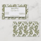 Elegant custom business cards with golden script and block letters inside a golden frame on a background pattern of vintage roses in white and golds, restored from an antique manuscript.