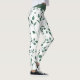 Elegant White and Green Leaf Pattern Print Leggings