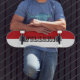 elegant red white personalised name skateboard, modern red white custom name skateboard .