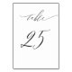 Elegant White Black Modern Script No 25 Wedding Table Number
