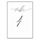 Elegant White Black Modern Script No 4 Wedding Table Number
