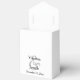 Elegant white black Wedding Favour Boxes with Black Ribbon Bow. Thank You Favour Boxes for wedding reception or other special occasions. Personalise with the Bride and Groom's First Names and Wedding Date. Love is written on back in silver script. Original Design © TamiraZDesigns.