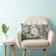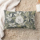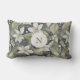 Elegant White Blossoms w Sage Leaves on Grey Lumbar Cushion