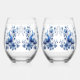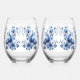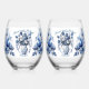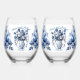 Elegant White & Blue Tulips in Vase Wedding Stemless Wine Glass