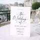 This refined white wedding invitation features an elegant script design in a sophisticated blue font. The crisp white background creates a clean and timeless look, perfect for a romantic and stylish wedding. Personalise it with your details for a beautifully customised touch. Ideal for formal, classic, and contemporary wedding themes.
