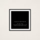 This modern, minimalist, and simple necklace display card features an elegant black and white design. It depicts a thick white border and matching trendy cursive signature typography on top of a plain black background. On the back, it includes your business contact information. It's a professional, elegant, and stylish way to display your product with pride. (Any holes or markings must be cut by the customer. They are only a guide.)