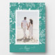 Tabletop plaque with a built-in easel features your favourite photo surrounded with a beautiful border of white foliage, dots and berries on a turquoise background. CHANGE the background colour to MATCH your photo. CHANGE the LOVE text to anything - TIP: put your text between the two squares to retain the text swashes. Great as a gift or to display your favourite photo in your own home. Your image colours are put directly on the hardboard panel for a stunningly crisp image with an easy wipe clean surface.
