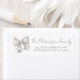 A simple and elegant envelope design featuring a delicate watercolor white bow on the left side, with the name and address beautifully displayed on the right. The name is written in handwritten script calligraphy, while the address is in a classic serif font for a timeless look.