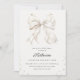 Elegant white bridal shower invitation featuring a white bow and pearl embelishments