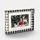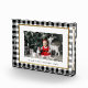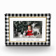 Elegant White Buffalo Plaid Personalized Holiday Photo Block