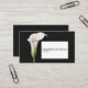 Convey a message of timeless grace and sophisticated minimalism with this stunning business card. The design features a single, exquisitely illustrated white calla lily, a classic symbol of purity and elegance, set against a dramatic, solid black background. This high-contrast composition creates a powerful and memorable visual statement. A clean, unadorned white rectangle provides a perfectly balanced space for your name and professional details, ensuring clarity and focus. The entire layout is enclosed by a thin, classic double border, adding a final touch of formal refinement. This design is an impeccable choice for distinguished professionals, including wedding planners, florists, event coordinators, funeral directors, therapists, and high-end boutique owners. Let this understated and elegant design communicate your brand's message with sophistication and grace.