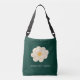 Elegant White Camellia Deep Green Botanical Bloom Crossbody Bag