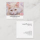 Business cards with a lovely illustration. A long haired white cat looking regal and elegant. Surrounded by pink flowers, gold and diamond jewellery.