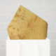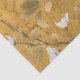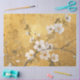 A stunning floral artwork featuring delicate white cherry blossoms set against a golden yellow background.