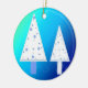 A pretty modern design featuring white Christmas trees on a pretty green and blue background.