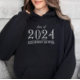 Stay cozy while celebrating your milestone with this black hoodie featuring "Class of" in delicate script with decorative dashes, the year in elegant white outlined typography, and the school name below. The back displays the graduate's first name in flowing script for a personalized monogram detail. A keepsake hoodie perfect for cool graduation nights, campus walks, and everyday senior pride. Customize the school name, year, and back name.