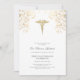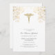 Celebrate the incredible achievement of your new doctor with this elegant White Coat Ceremony invitation! Featuring delicate gold swirls in the corners and a distinguished caduceus symbol, this sophisticated design sets the perfect tone for a joyous gathering with family and friends. Personalise the details to create a memorable keepsake as you honour this significant milestone in their medical journey.