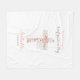 Elegant fleece blanket for confirmation with a floral cross on a white background. Personalise with text, name and date. Makes a thoughtful gift for confirmation.