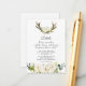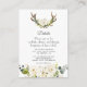 A Rustic, Bohemian design for special, almost all season events! This design features deer antlers, watercolour white, cream flowers bouquets, arrows with the same flowers and on the back floral bouquet on white background. Use Personalise tool to add your info. For more, visit please, my White Cream Floral Antlers Collection.