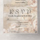 Introducing our elegant, chic white peony themed wedding invitation featuring a cream, ivory, gold textured background with white peonies and dark brown, almost black text. At the top of the invitation you can customise with a personalised photo that will have a cream transparent overlay so it blends with the existing colour scheme of this invitation. This invitation is perfect for couples seeking a classic and timeless aesthetic for their special day. Included is a traditional paper RSVP, with the all-in-one design, guests can easily tear away the RSVP section and mail it back to you.