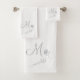 Elegant White Custom Monogram Name Flower Bath Towel Set