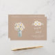 The simplicity of a bouquet of white daisies in a mason jar, aided by the white script font, creates an elegant yet minimalistic wedding design. Kraft paper adds a charming rustic backdrop. The text is fully editable.