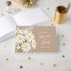 The simplicity of a bouquet of white daisies, aided by the white script font, creates an elegant yet minimalistic wedding design. Kraft paper adds a charming rustic backdrop. The text is fully editable.