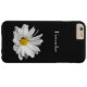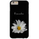 A Barely There iPhone 6 Plus Case with a photograph of an elegant white daisy with a yellow centre against a pure black background. Add your name name to this pretty flowers design.