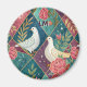Elegant White Doves Pink Floral & Gold Geometric Magnet