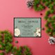 Elegant white floral blooms and leaves boarded with foil in choices of: gold, silver and rose gold. Easily customisable fonts and font colours. Use the “ Edit using Design Tool “ button to customise further
