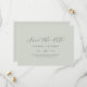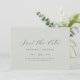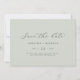 This elegant white floral coordinate sage green save the date card is perfect for a simple wedding. The minimalist light green design features fancy romantic typography with modern glam style. Customisable in any colour. Keep the design minimal and classy, as is, or personalise it by adding your own graphics and artwork.