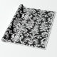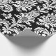 Elegant White Floral Damasks Black Background Wrapping Paper