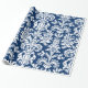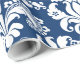 Elegant White Floral Damasks Blue Background Wrap Wrapping Paper