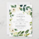 This elegant white floral front and back wedding invitation is perfect for a classic wedding. The modern vintage design features beautifully romantic ivory and cream watercolor rose and peony flowers with dark green leaves, greenery and botanicals. Save paper by including the details on the back of the wedding invitation instead of on a separate enclosure card. Include the RSVP info as well if your guest will be replying electronically (optional).