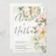 Elegant White Floral Green Leaves Script Wedding Invitation
