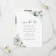 This elegant design features your "Save the Date" details along with soft white lilies, roses, eucalyptus greenery and other watercolor items in dusty blues and sage greens. Back of card features white floral bouquets and your favourite photo with a script "Save the Date" overlay. A lovely design, perfect for spring, summer, fall, winter weddings. Matching accessories available.