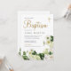Elegant White Floral Greenery with Cross Baptism Invitation