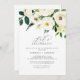 This elegant white floral let's celebrate invitation is perfect for a classic engagement party, wedding after party, retirement, graduation or any happy event. The modern vintage design features beautifully romantic ivory and cream watercolor rose and peony flowers with dark green leaves, greenery and botanicals.